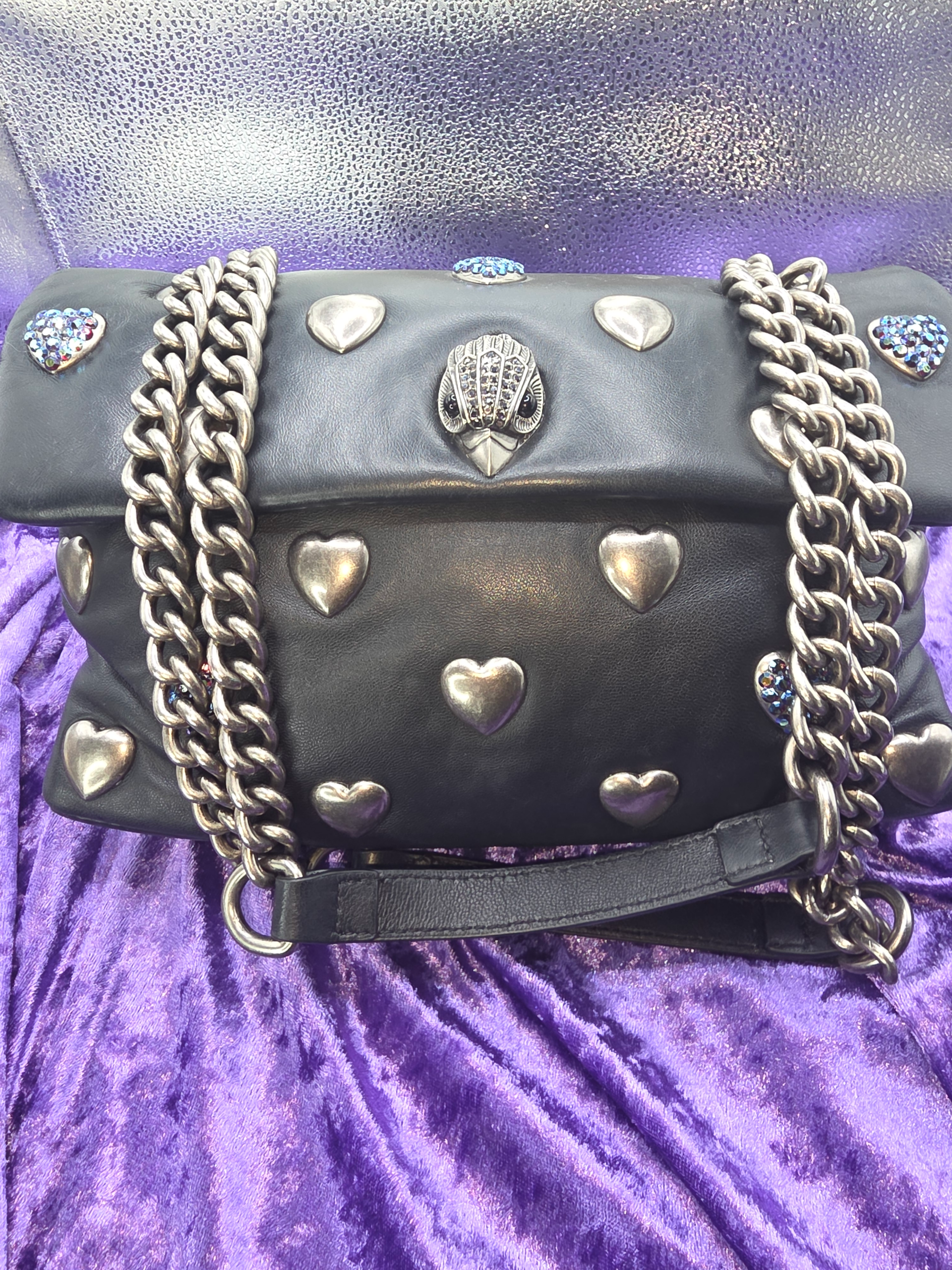 Kurt Geiger Lambskin Leather Medium Shoulder Bag With Silver Hearts and Austrian Crystals.