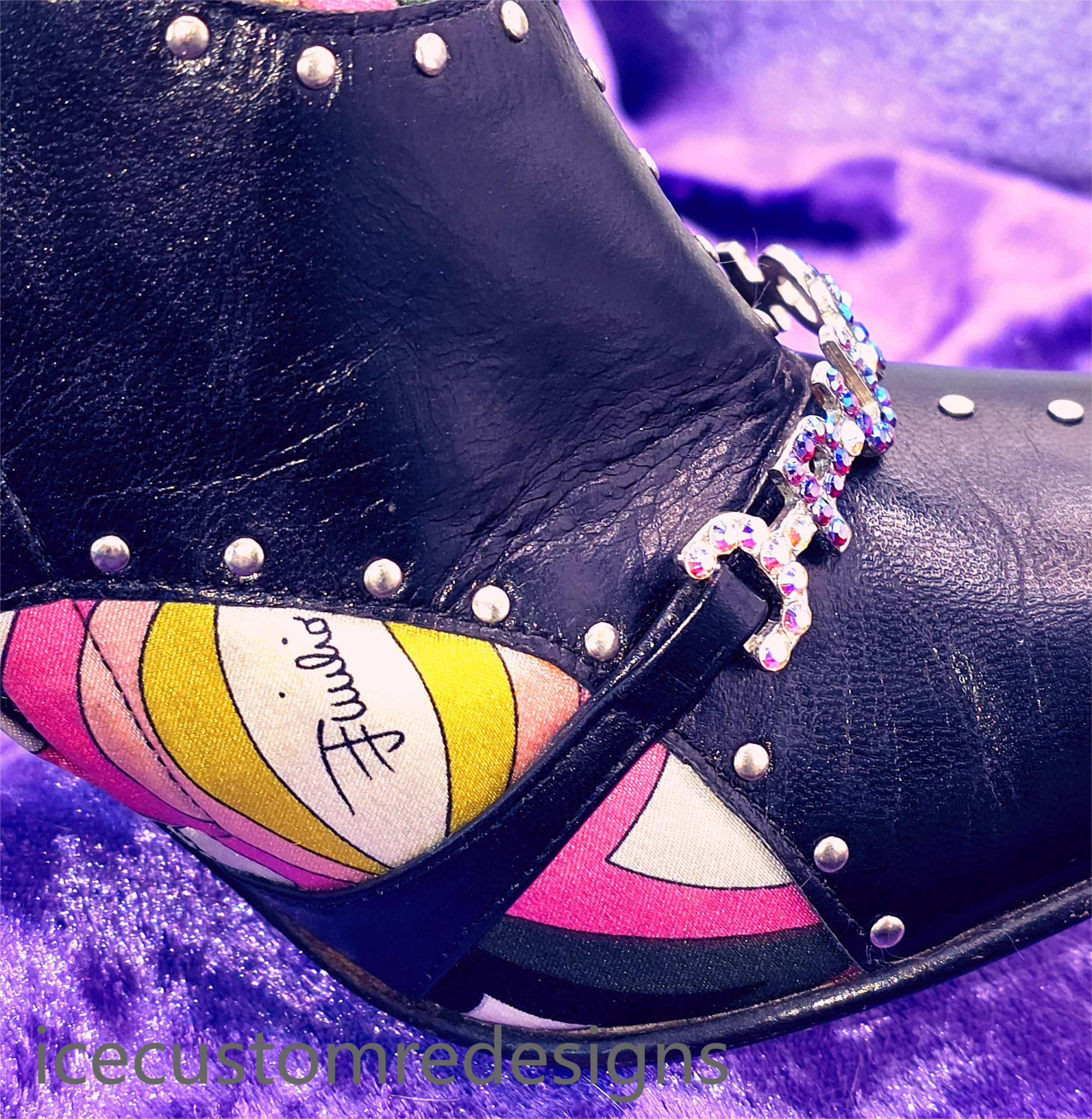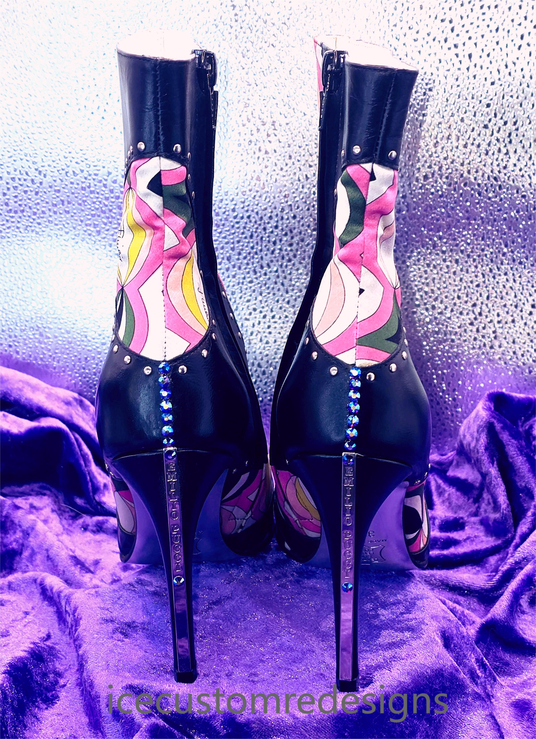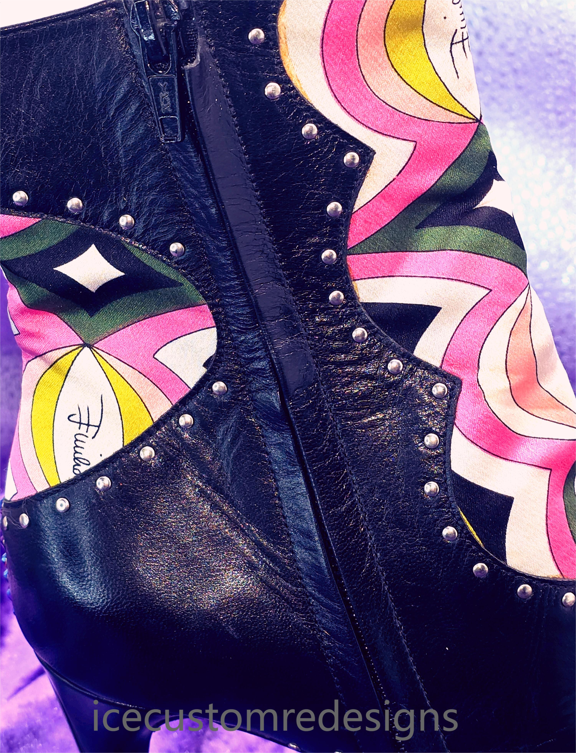 VINTAGE Emilio Pucci Leather & Satin Boots With Studs and Austrian Crystals. Never worn outside. Fing Beautiful Boots.