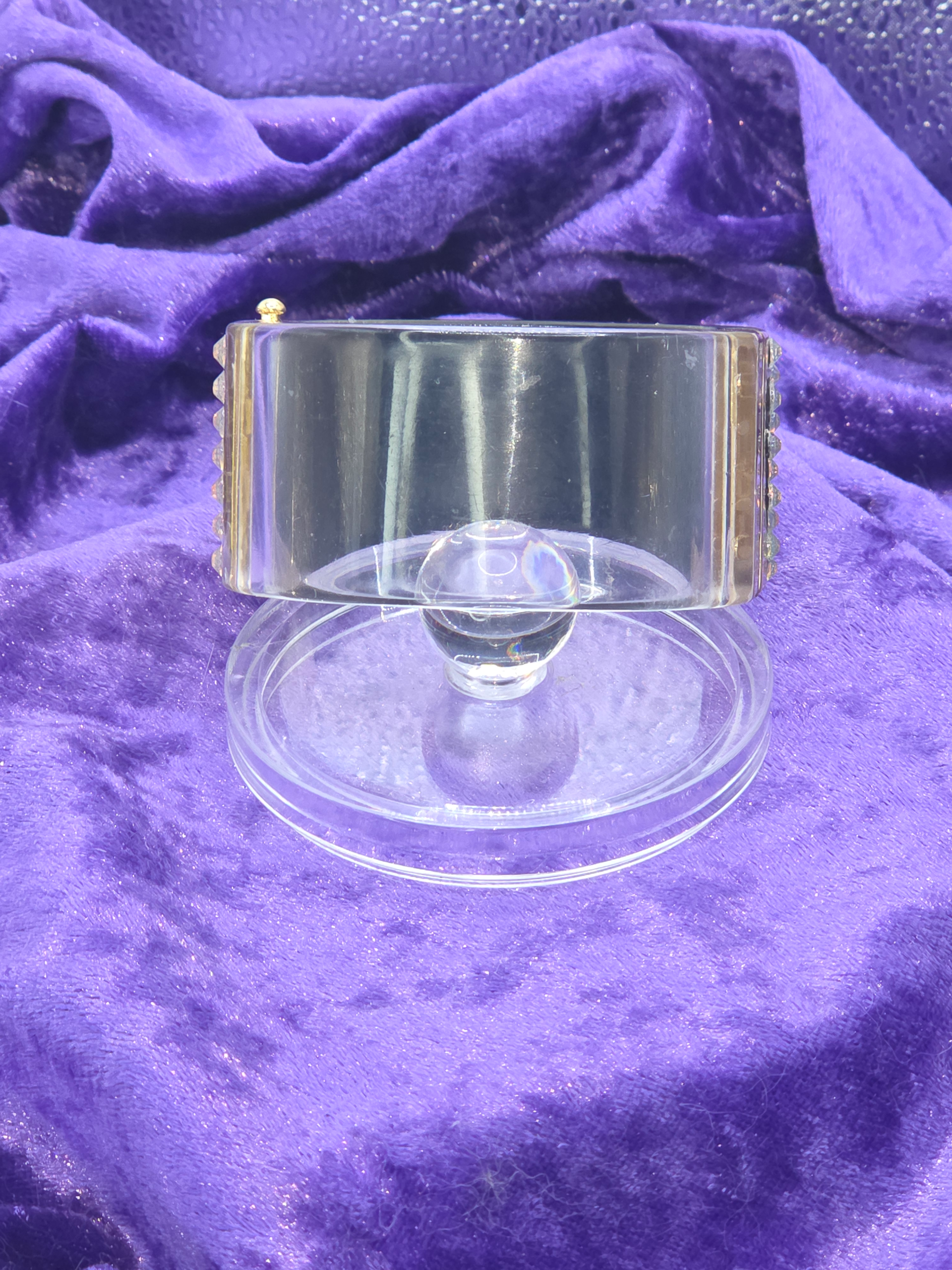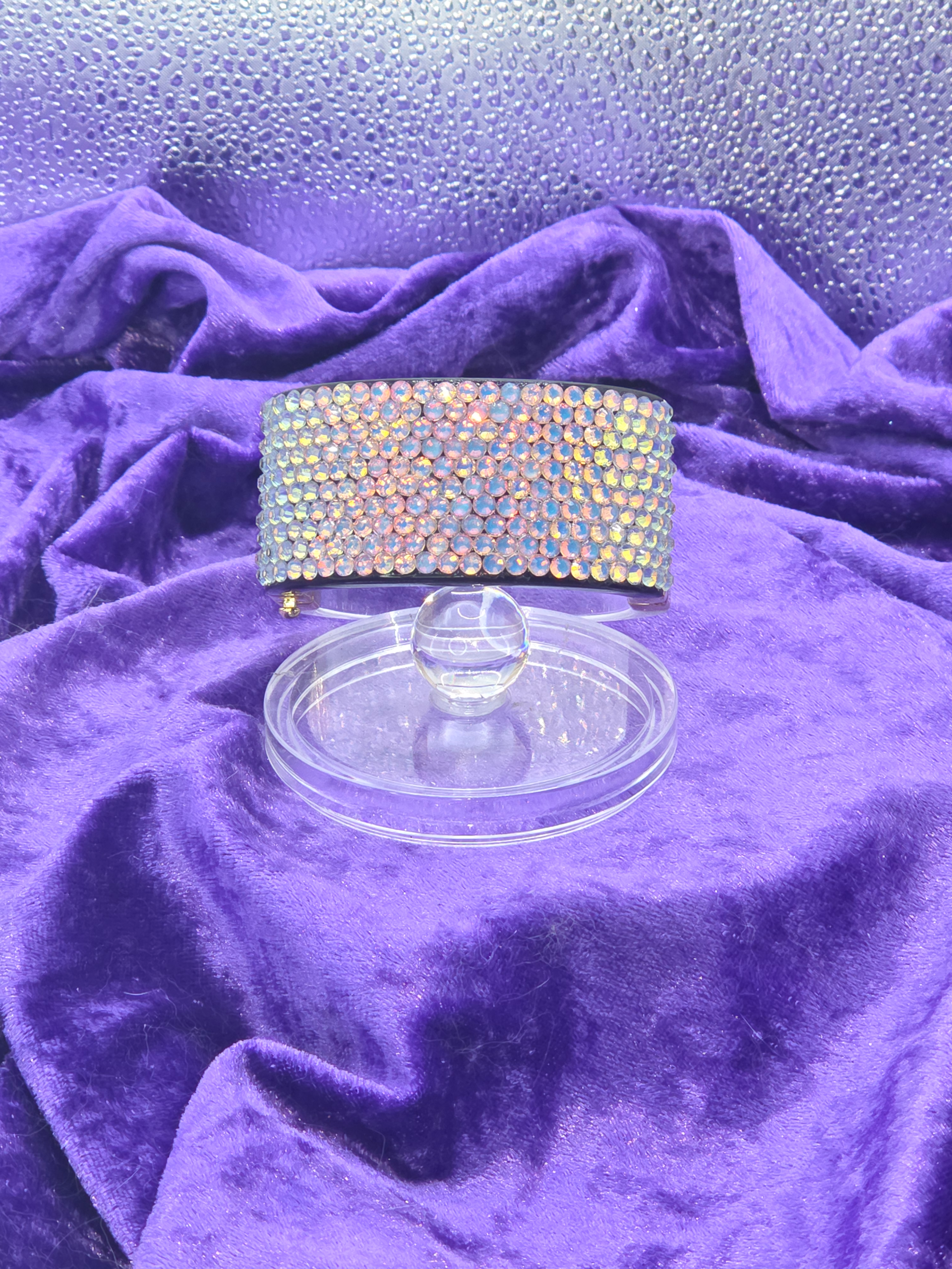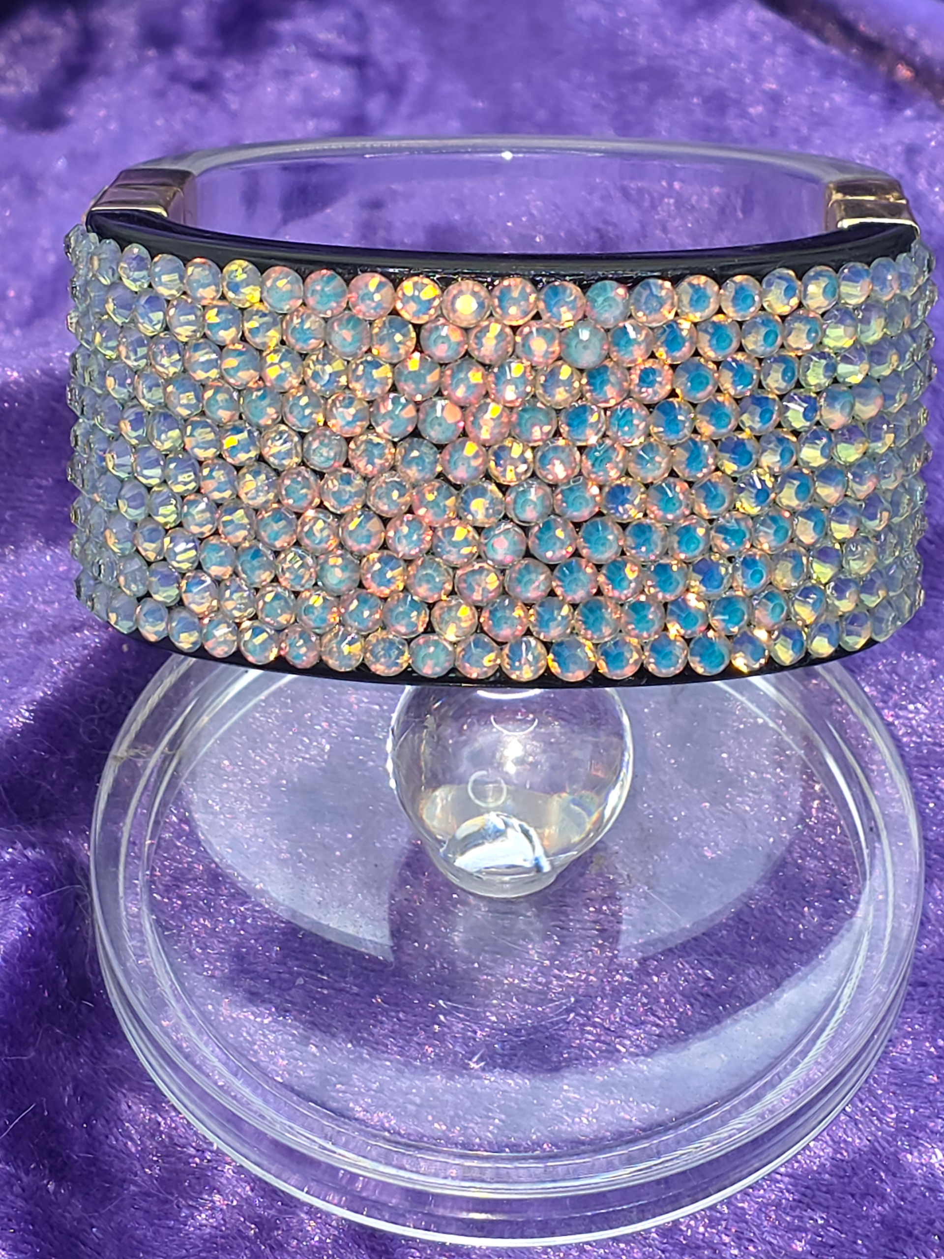 Wide Clear Acrylic & Crystal Bracelet. The colors of the stones are an iridescent pinkish opal. Stunning!